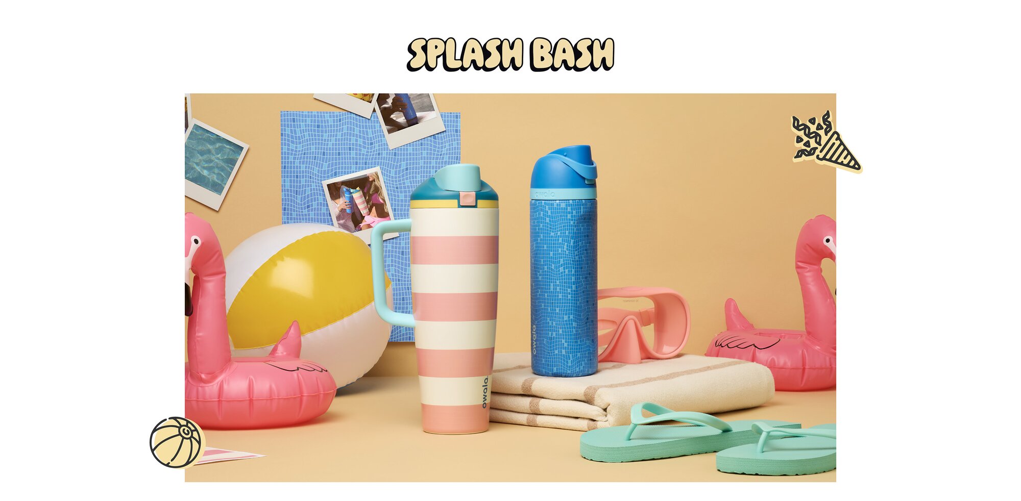 It’s a pool party! Celebrate Owala’s fifth birthday with the new Splash Bash collection. Splash Bash includes a 24-ounce “Take a Dip” blue FreeSip (that gorgeously embodies glimmering blue pool tiles) and a 40-ounce “Cabana Breeze” FreeSip Tumbler with pink and white stripes to remind you of your favorite beach towel.