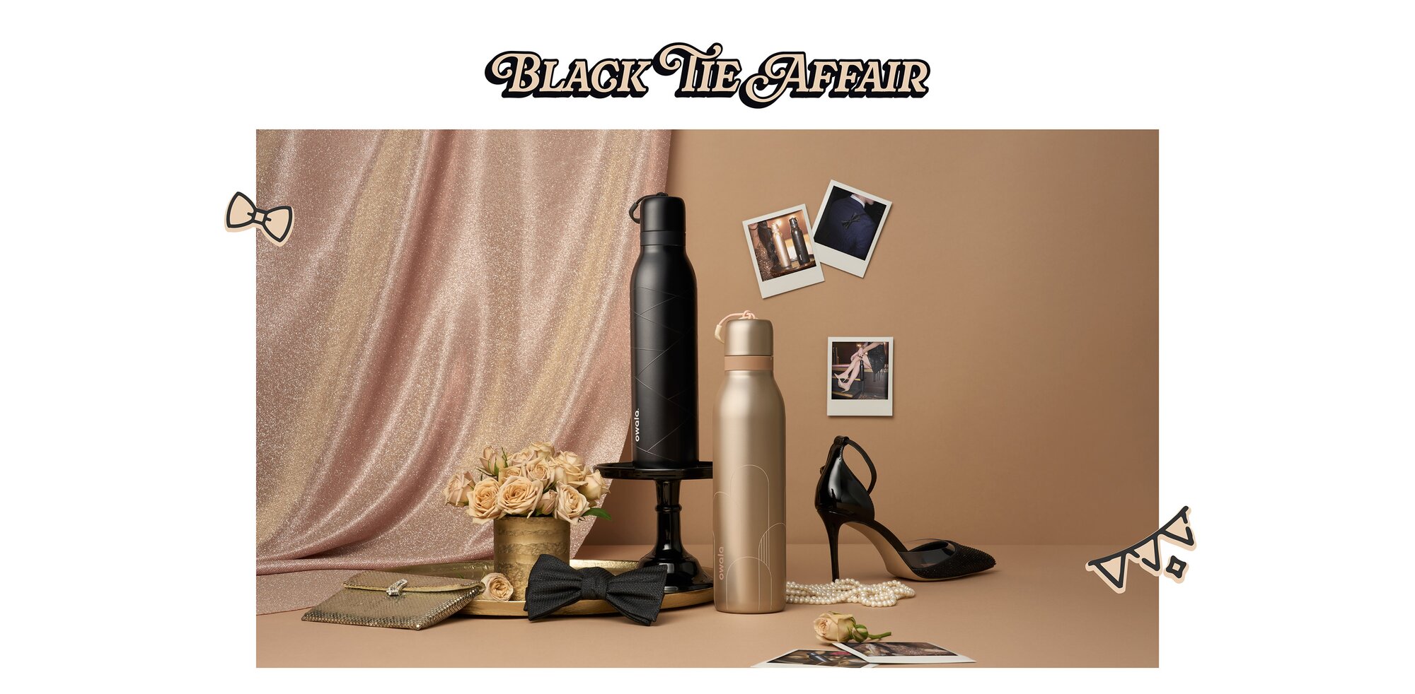 Grab your bow ties and high heels because Owala is getting classy with the Black Tie Affairs-themed bottles. These two 24-ounce bottles, dubbed  “Paparazzi” and “Lights, Camera, Action,” are black and gold metallic FreeSip Twist bottles that are elegant accessories for the most upscale birthday bash.